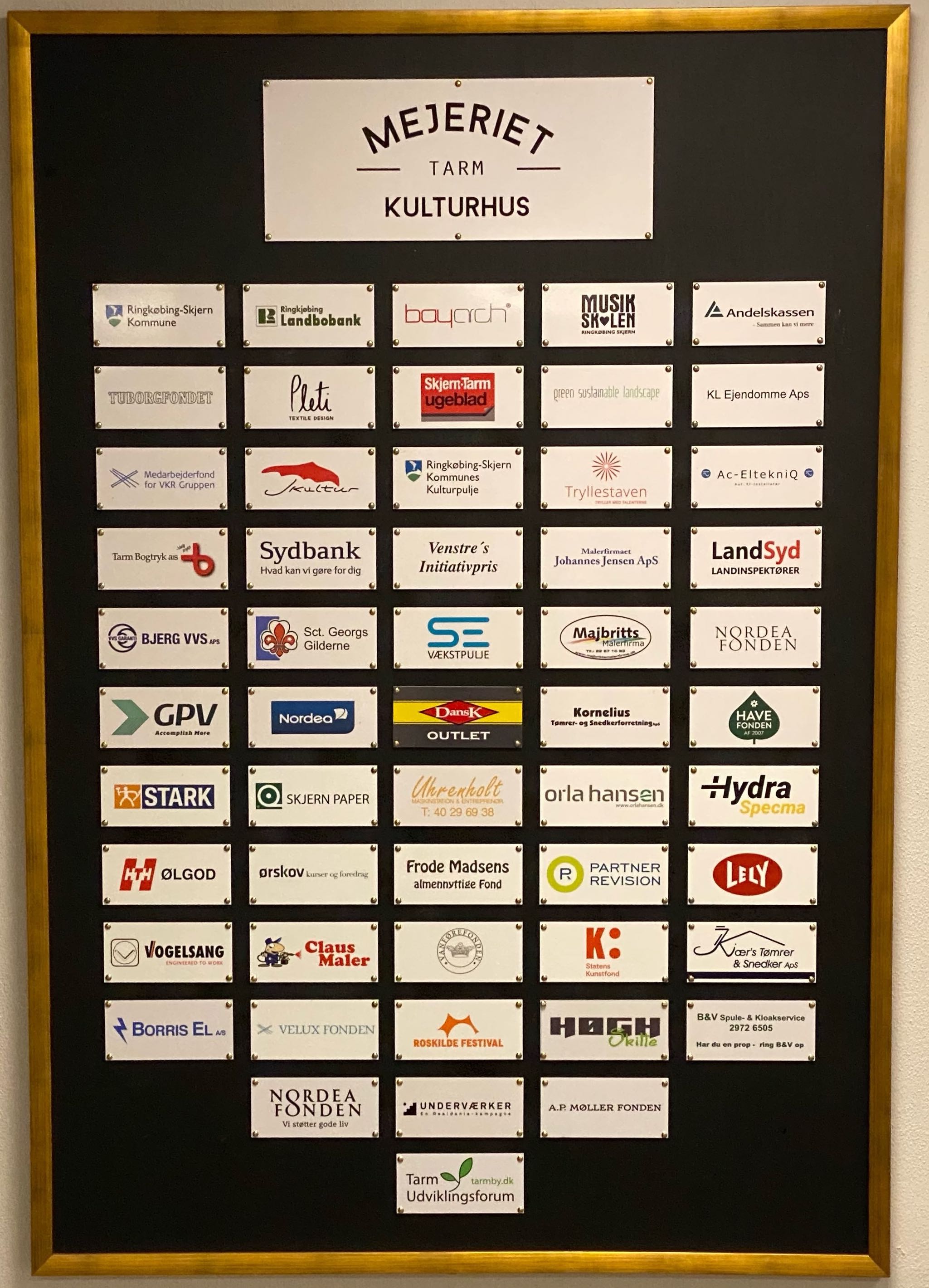 Sponsortavlen giver et overblik over den store støtte, vi har fået gennem de første 10 år - mellem 7 og 8 millioner kroner.
